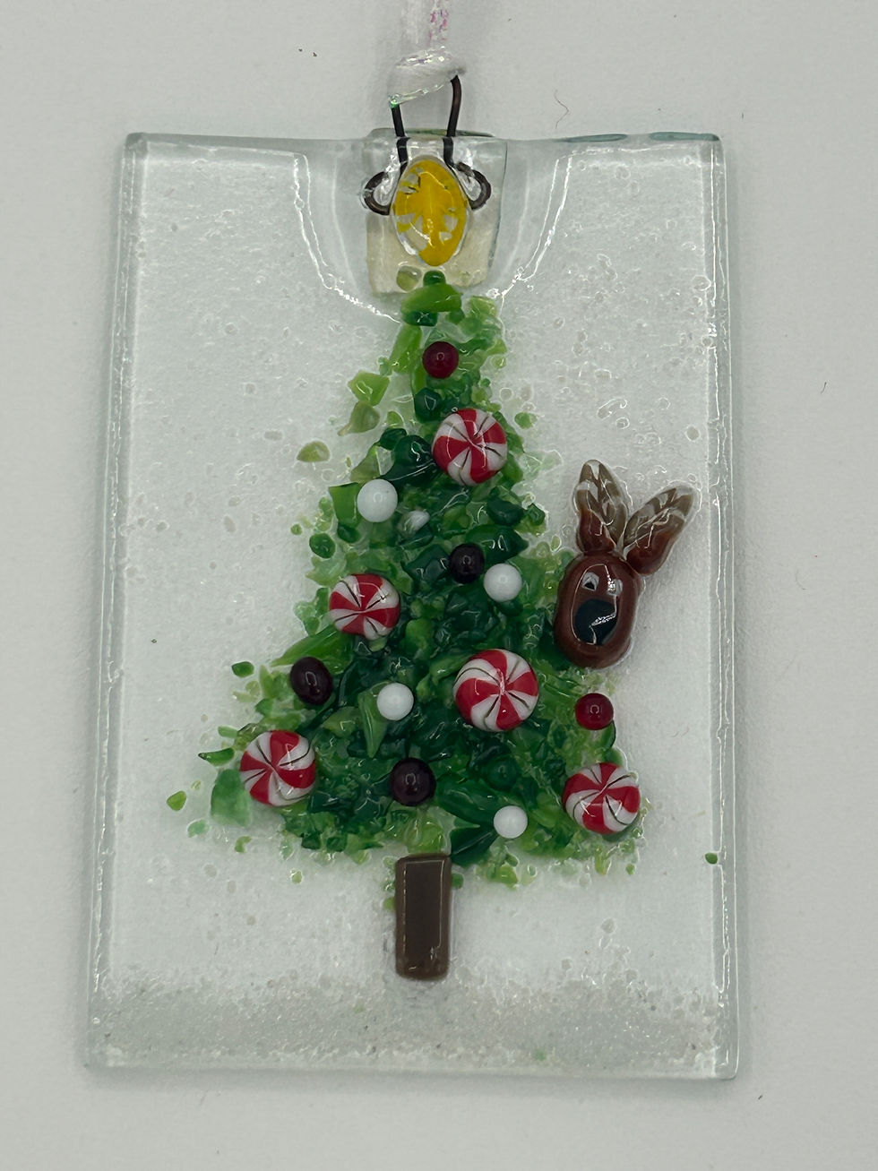 This simple dish is 8"x4" and features some freeze & fuse daisies and a dragonfly. The base glass is a Fuser's Reserve called Pale Green & Aqua Stir. The glasses in one of the photographs is for size.